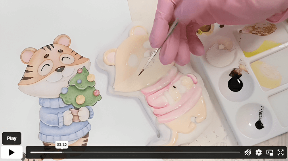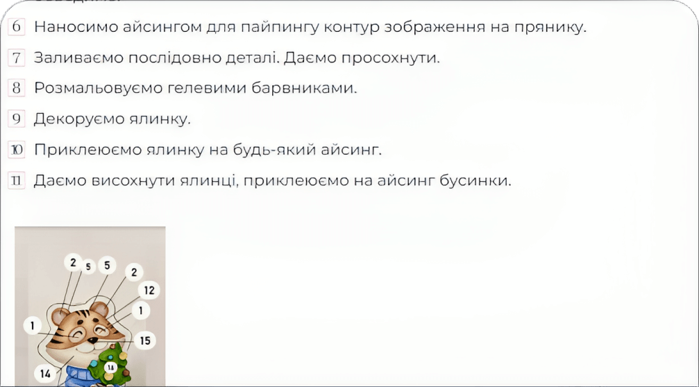 Демонстрація художнього розпису фарбами по айсингу та прикріплення ялинки до пряника.